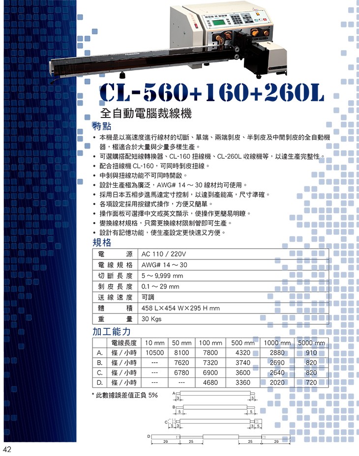 CL-560+160+260L全自動(dòng)電腦裁線機(jī)采用電腦控制方式,是精度更準(zhǔn)確,操作更簡(jiǎn)單,性能更穩(wěn)定,歡迎來電訂購!